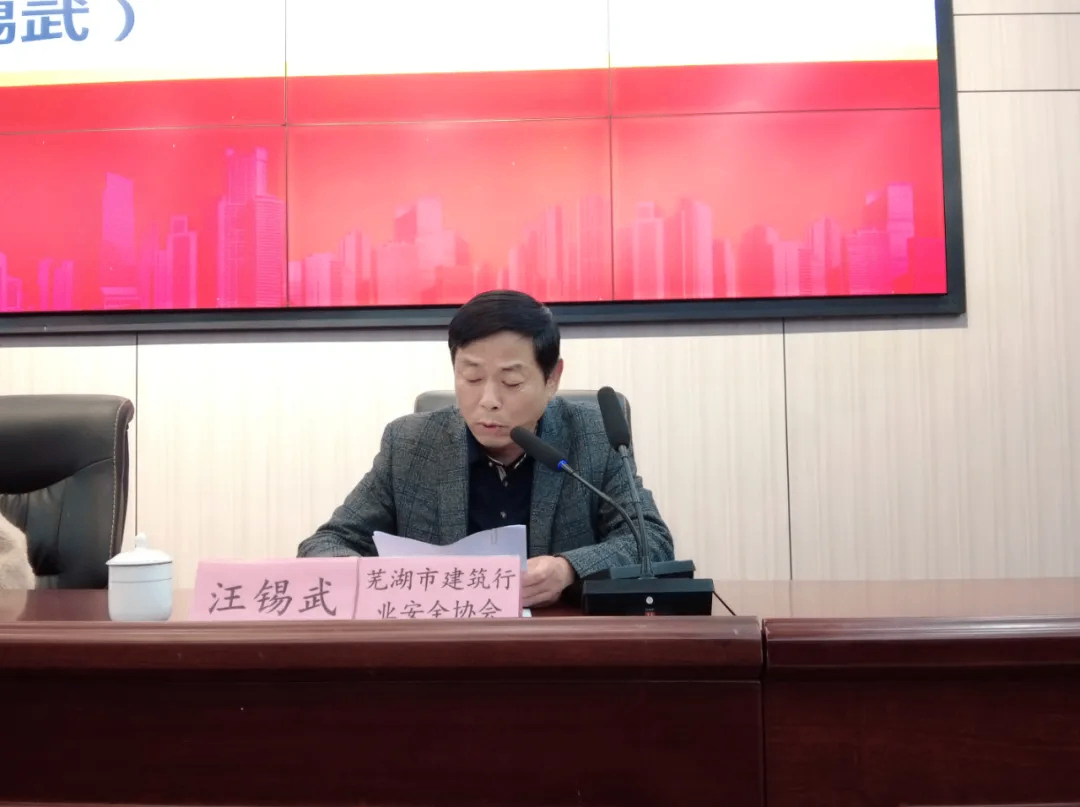 2024年12月4日下午,芜湖市建筑行业安全协会在芜湖皖南职业培训学校会议厅召开芜湖市建筑行业安全协会第四次会员大会,协会会员单位代表共43人出席会议。芜湖市民政局行政审批科负责人陈莉昌,芜湖市住建局质安科科长周俊,南陵县建筑业协会代表,莅临会议指导,会议由芜湖皖南职业培训学校孙锃炜主持。